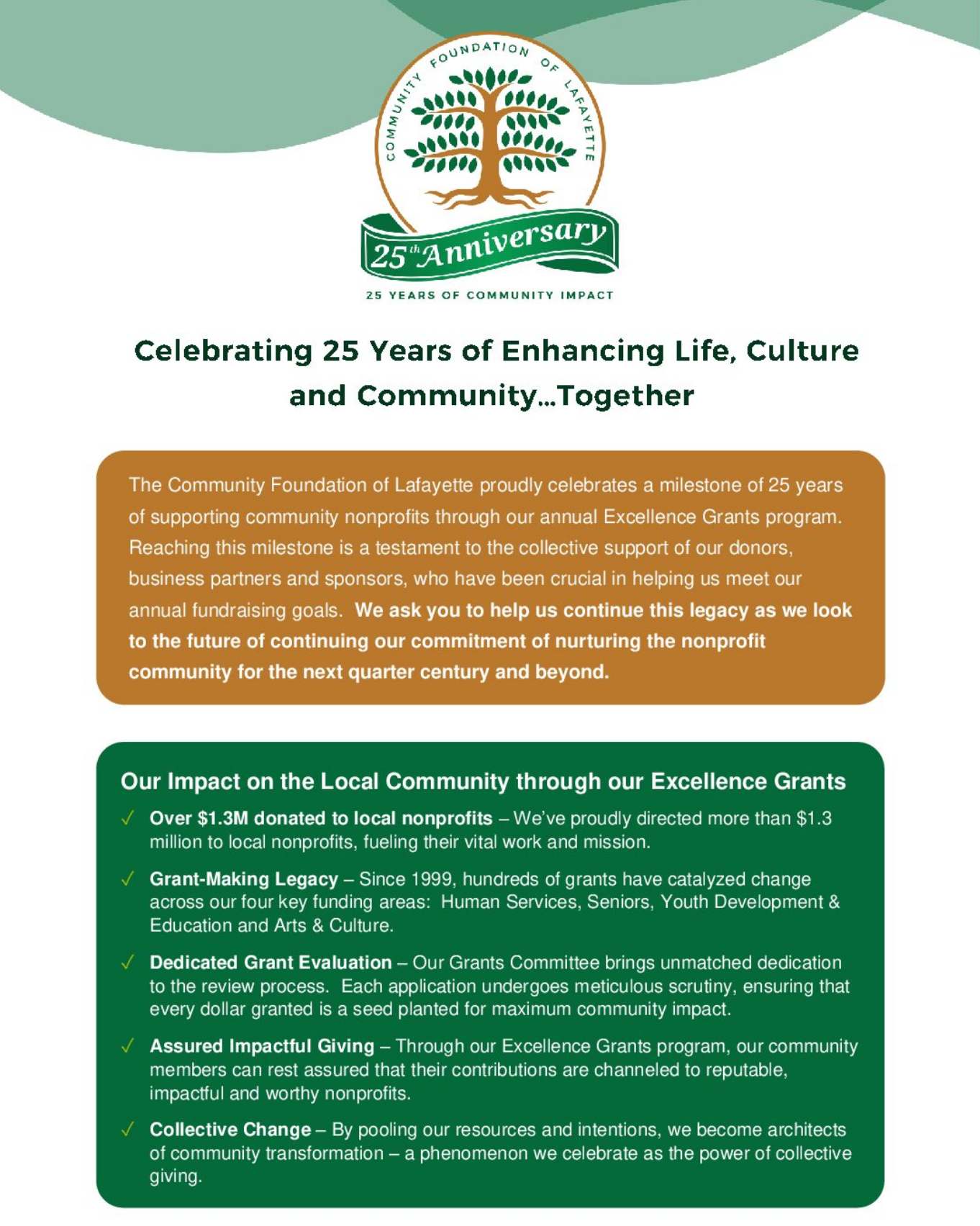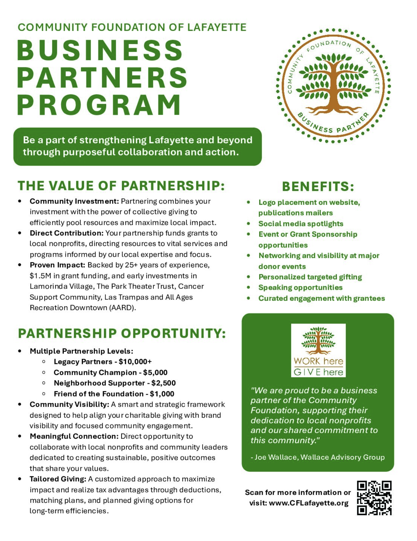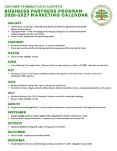 If you are interested in becoming a business partner, please contact info@lafayettecf.org