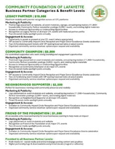 Your sponsorship helps fund critical services and demonstrates your commitment to giving back. Let’s work together to build a stronger, more connected Lafayette.